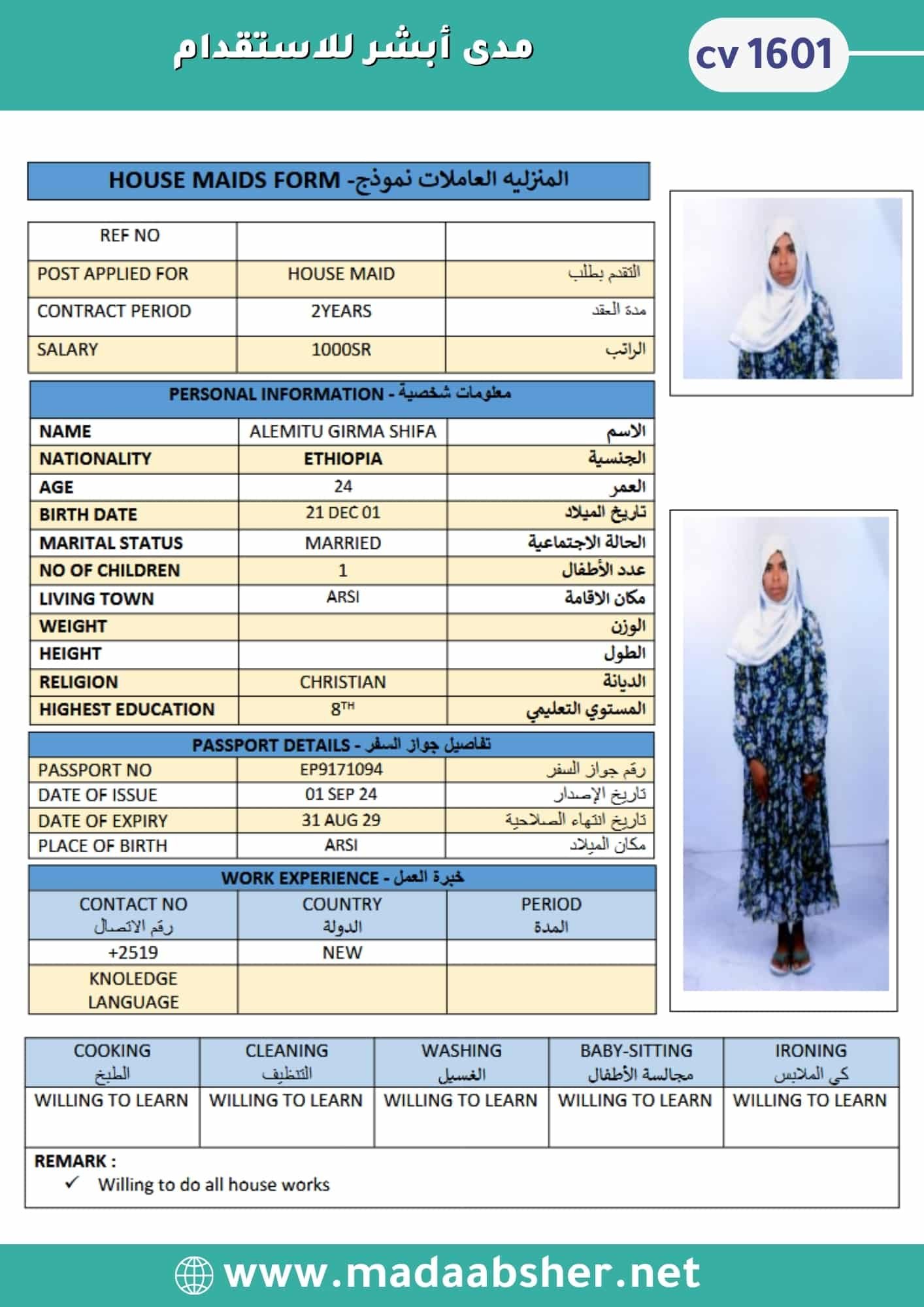 • خبرة وكفاءة عالية في جميع الأعمال المنزلية