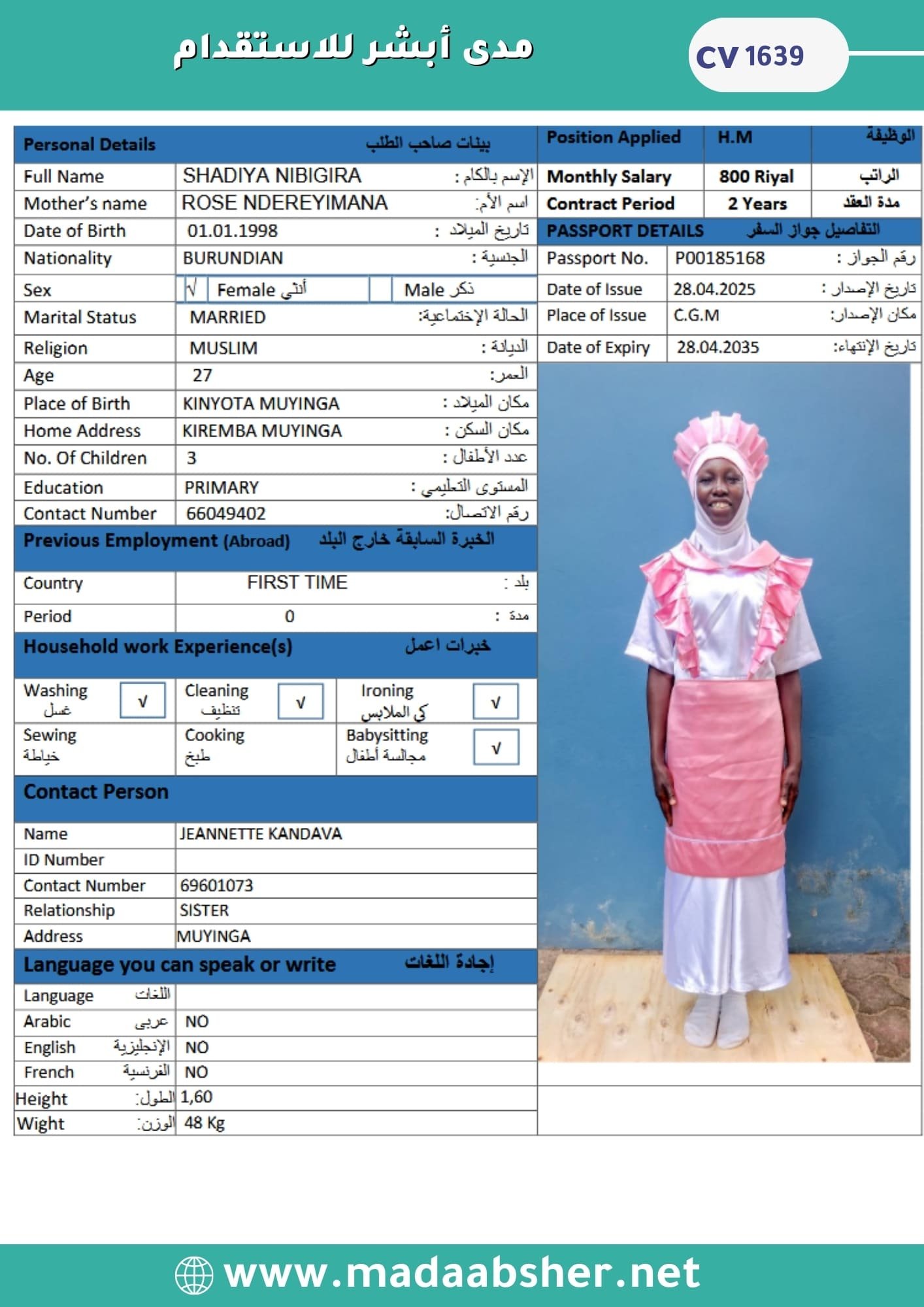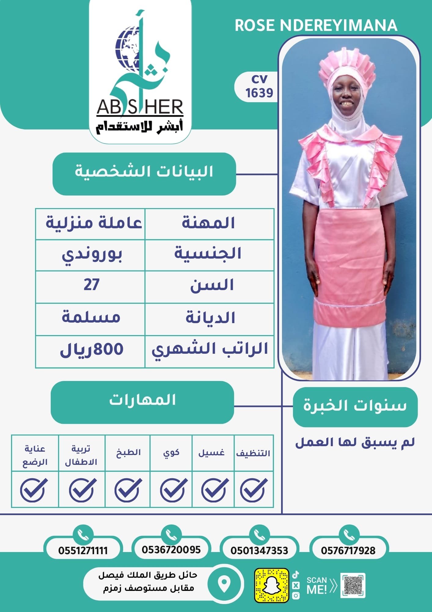 • خبرة وكفاءة عالية في جميع الأعمال المنزلية