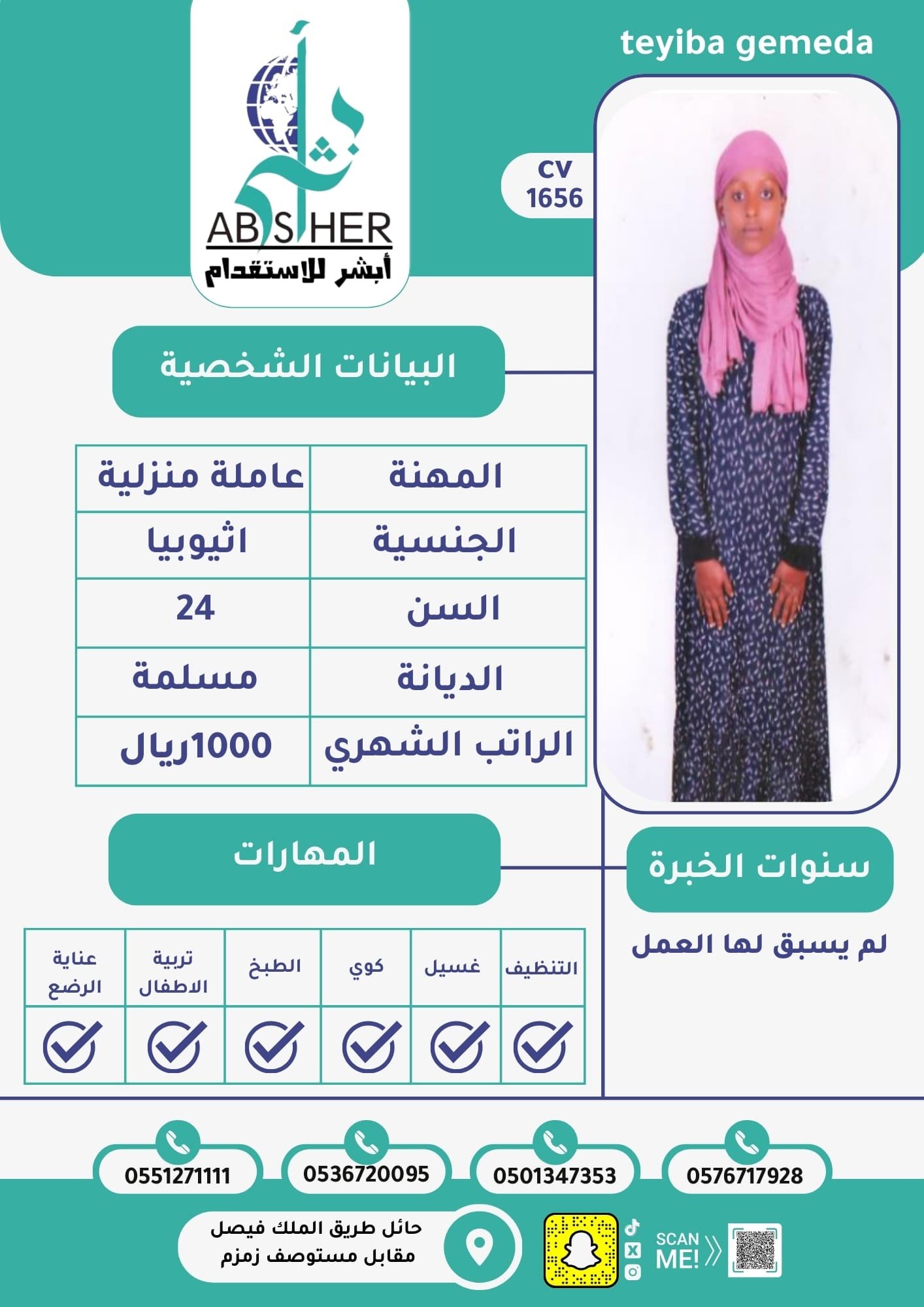 • خبرة وكفاءة عالية في جميع الأعمال المنزلية