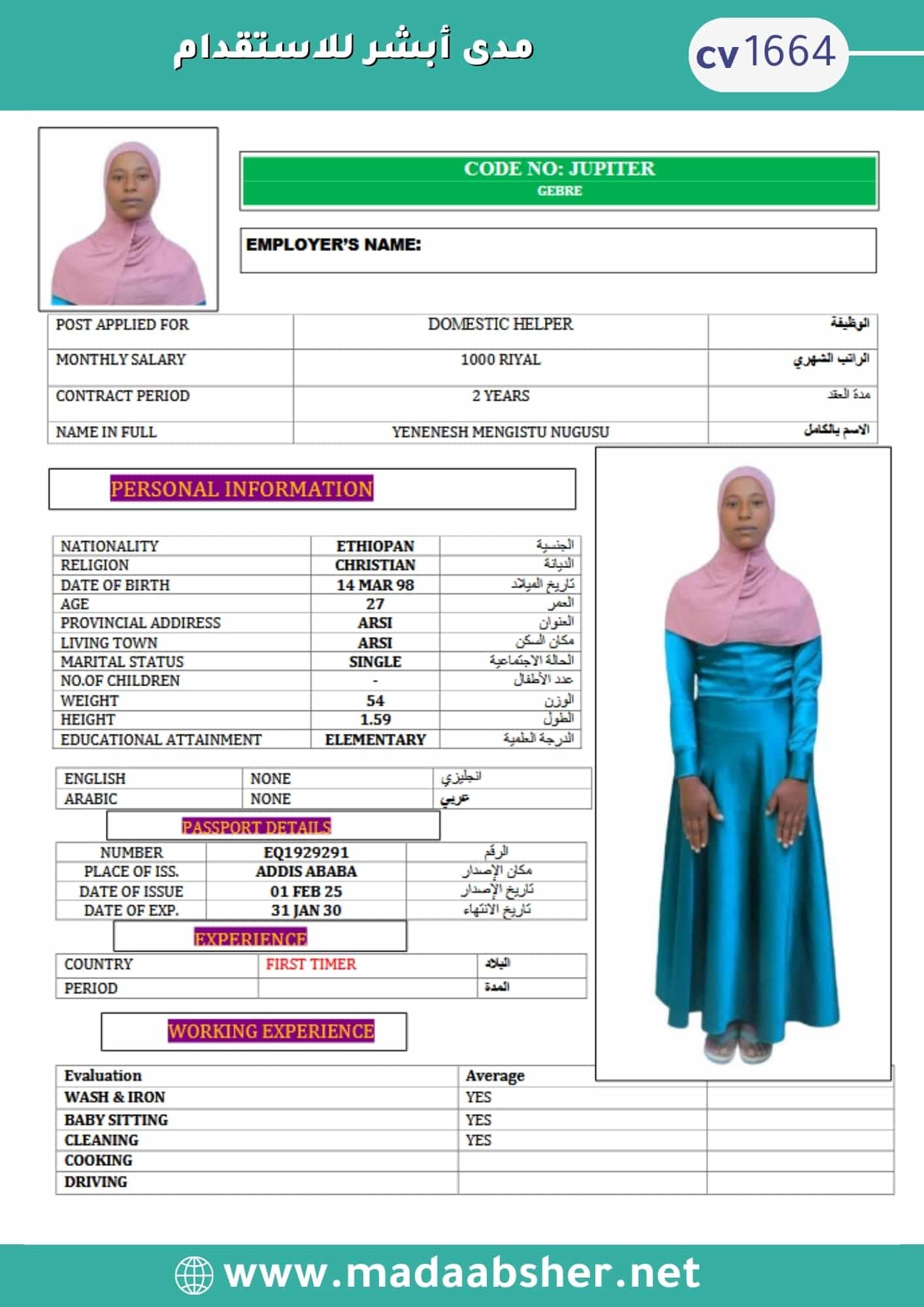 • خبرة وكفاءة عالية في جميع الأعمال المنزلية