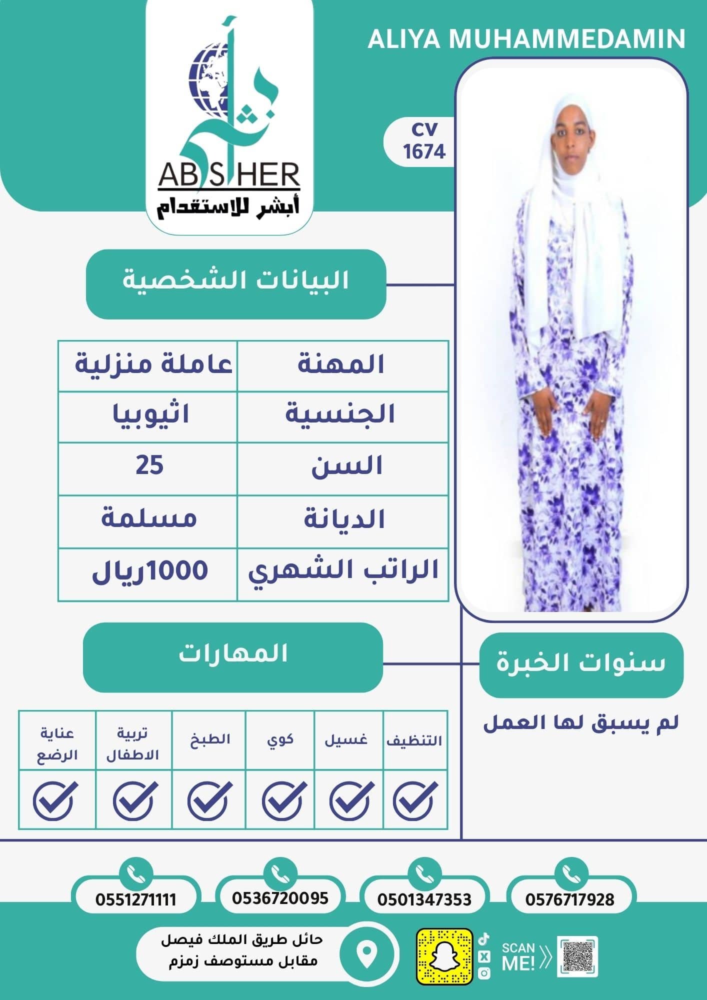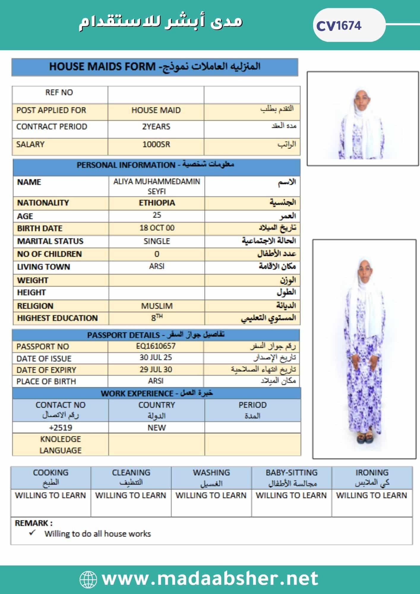• خبرة وكفاءة عالية في جميع الأعمال المنزلية