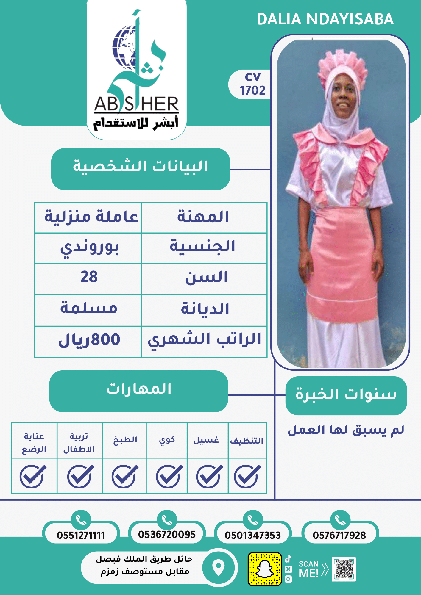 • خبرة وكفاءة عالية في جميع الأعمال المنزلية