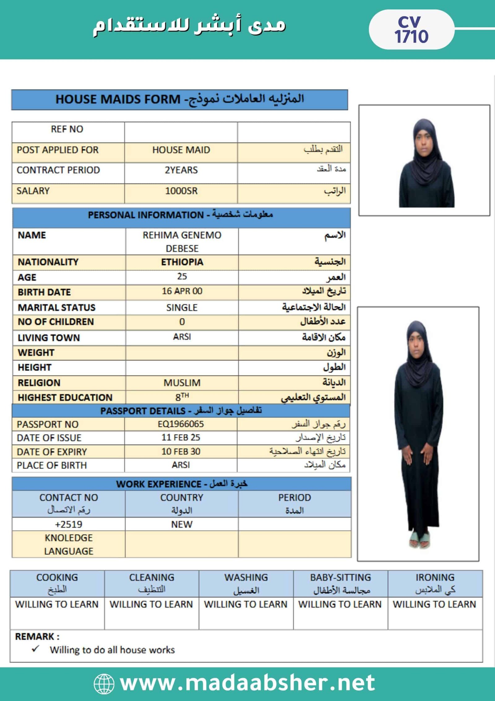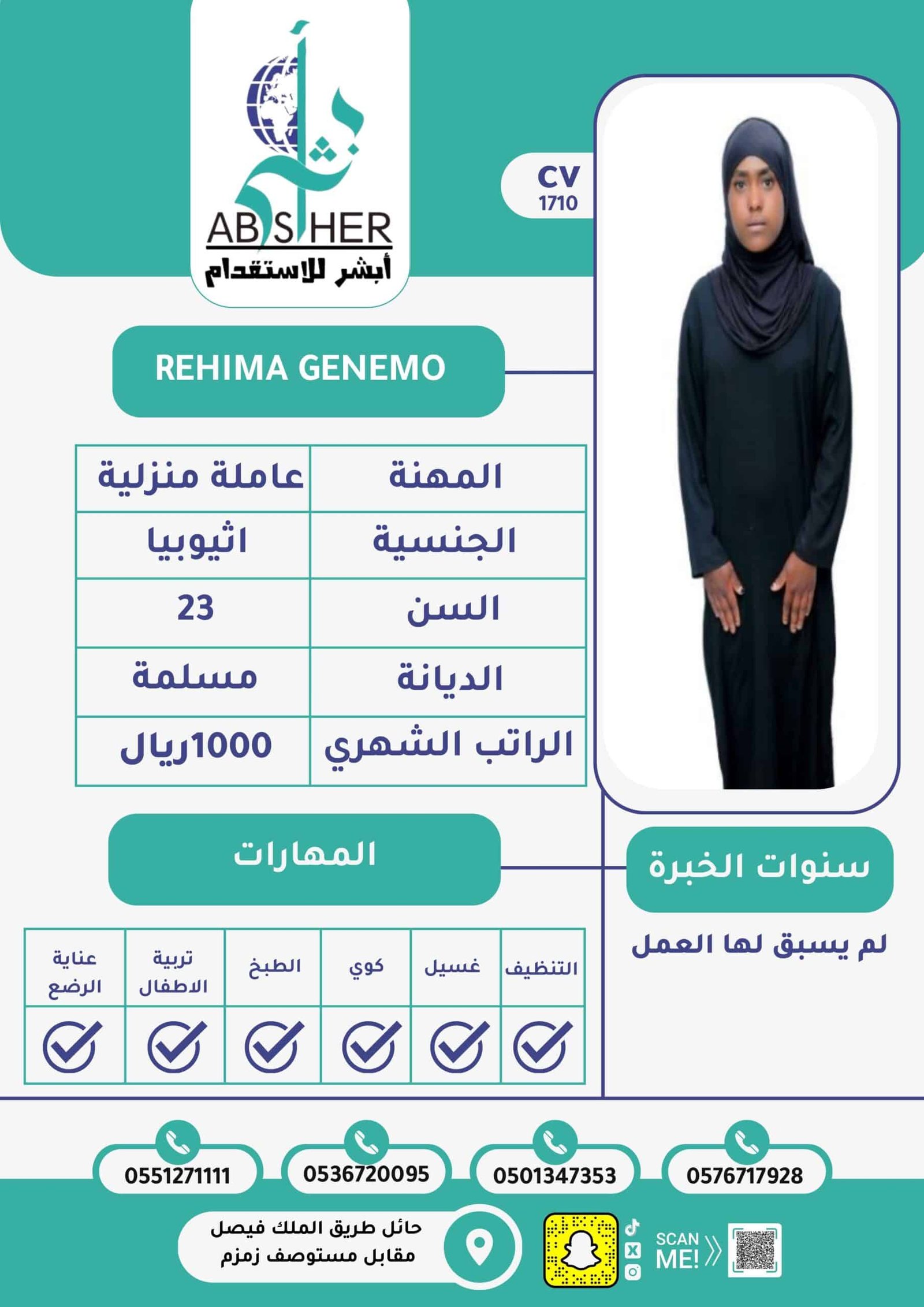 • خبرة وكفاءة عالية في جميع الأعمال المنزلية