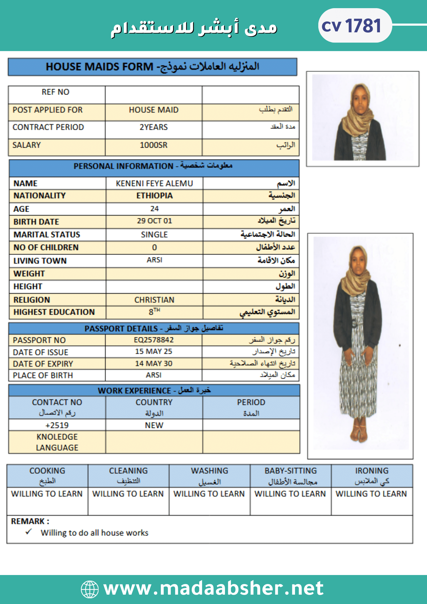 • خبرة وكفاءة عالية في جميع الأعمال المنزلية