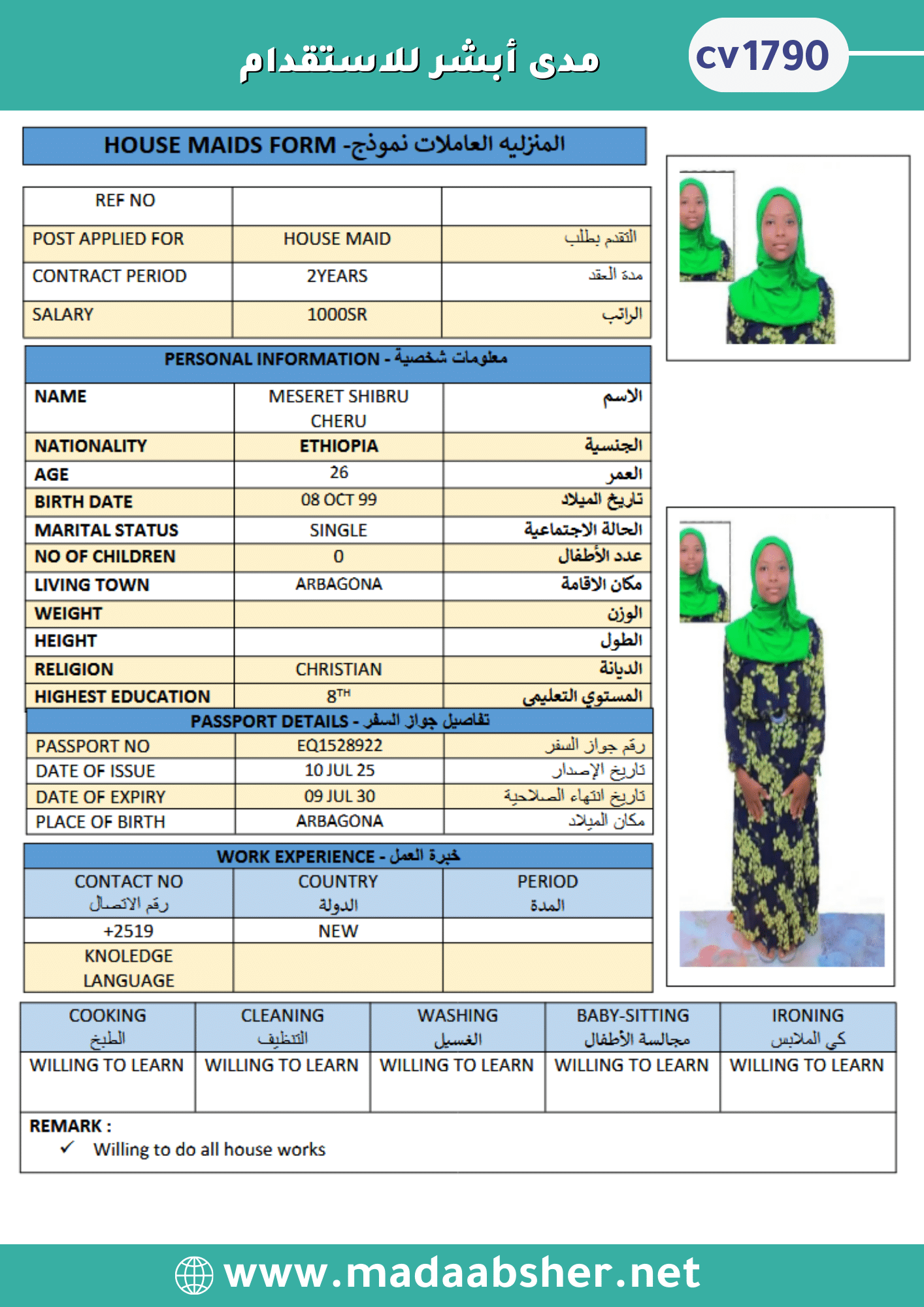 | راتب العاملة الشهري | 1,000 ريال سعودي |
