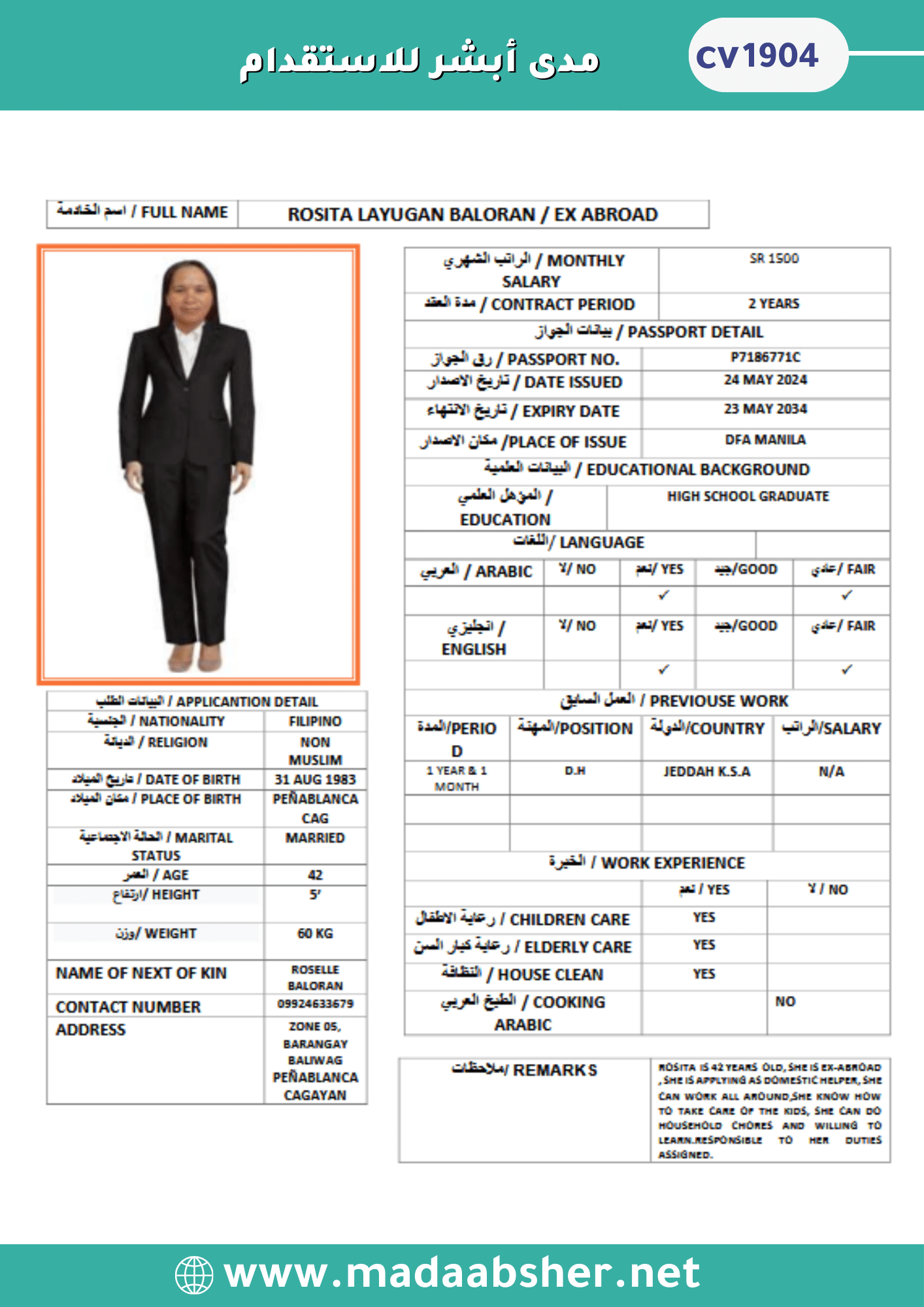 1. الخبرة: العاملات الفلبينيات يمتلكن خبرة واسعة في جميع جوانب العمل المنزلي، مما يجعلهن مؤهلات لأداء المهام بكفاءة عالية.