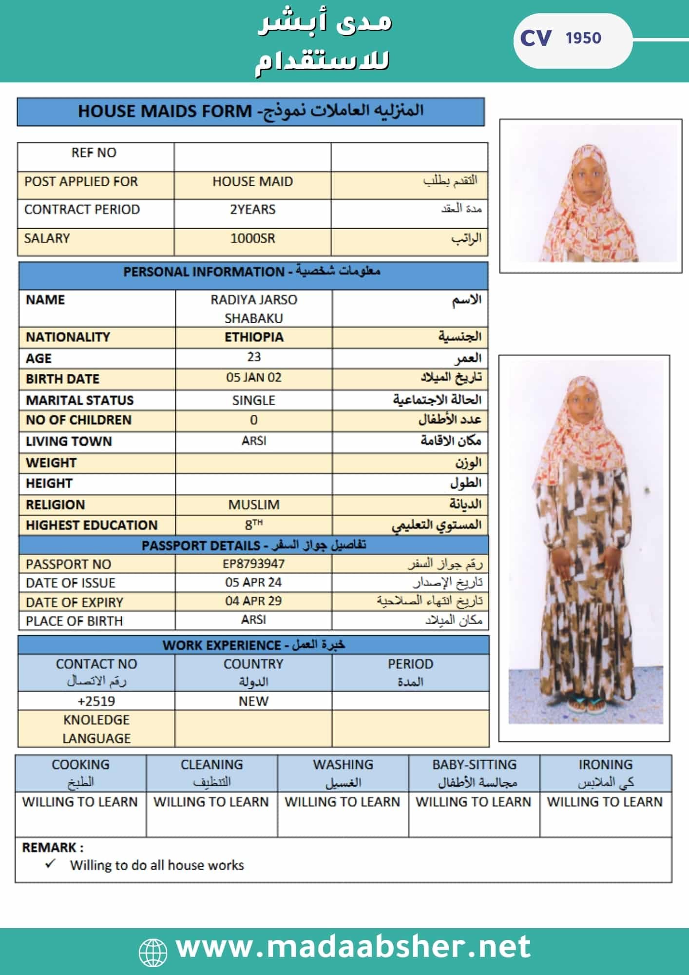 • خبرة وكفاءة عالية في جميع الأعمال المنزلية