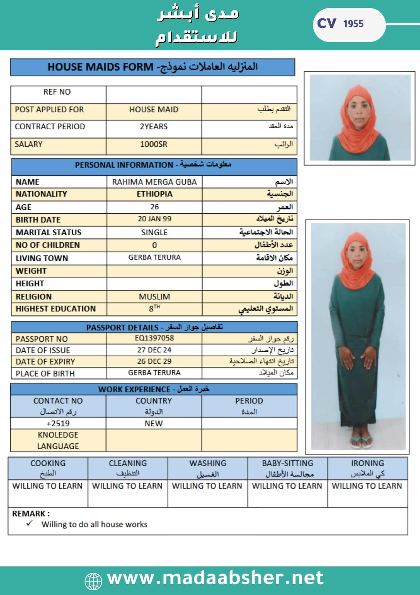| راتب العاملة الشهري | 1,000 ريال سعودي |