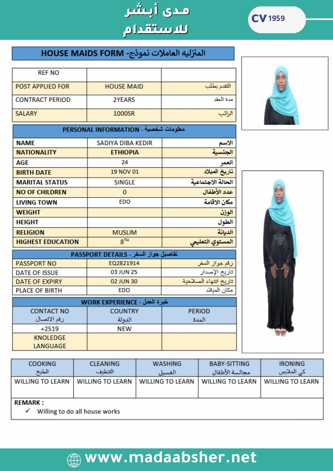 • خبرة وكفاءة عالية في جميع الأعمال المنزلية