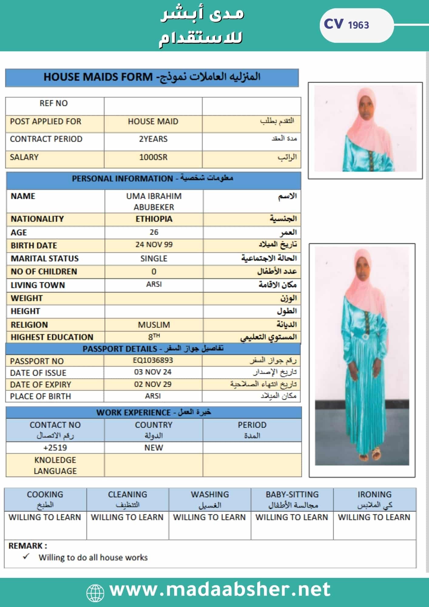 • خبرة وكفاءة عالية في جميع الأعمال المنزلية
