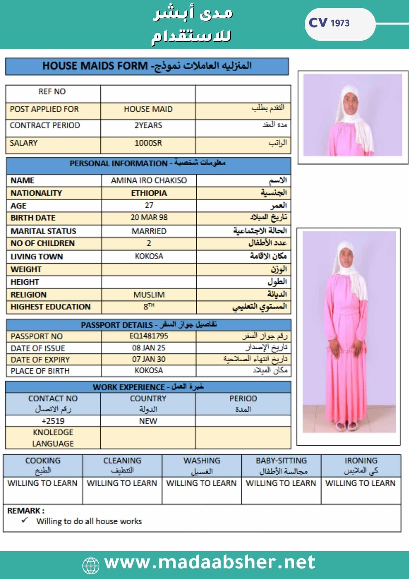 • خبرة وكفاءة عالية في جميع الأعمال المنزلية
