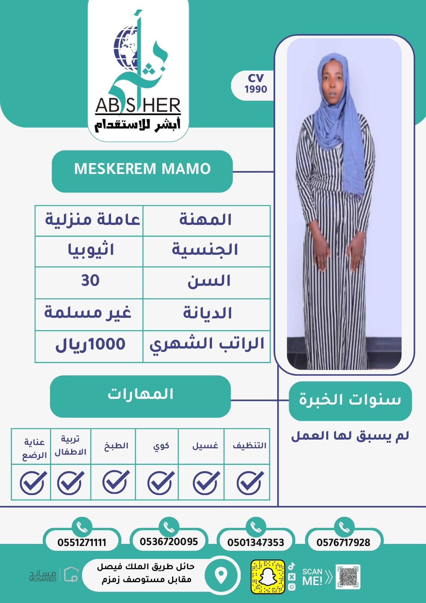 • خبرة وكفاءة عالية في جميع الأعمال المنزلية