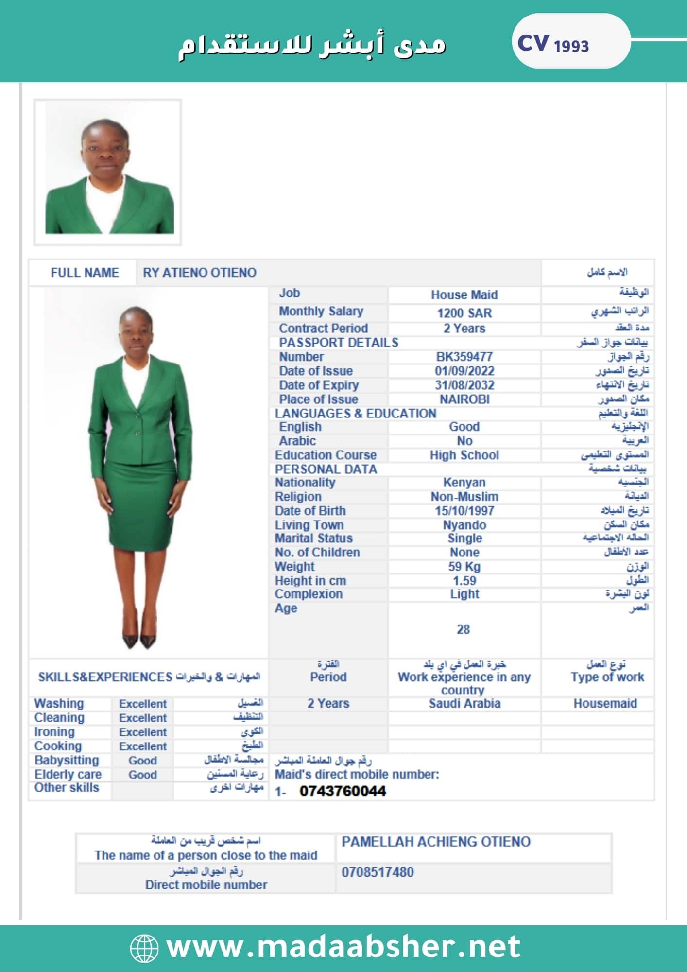 📞 للاستفسار أو البدء بإجراءات استقدام عاملة منزلية من كينيا عبر مكتب مدى أبشر للاستقدام، تواصل معنا الآن ( +966576717928)