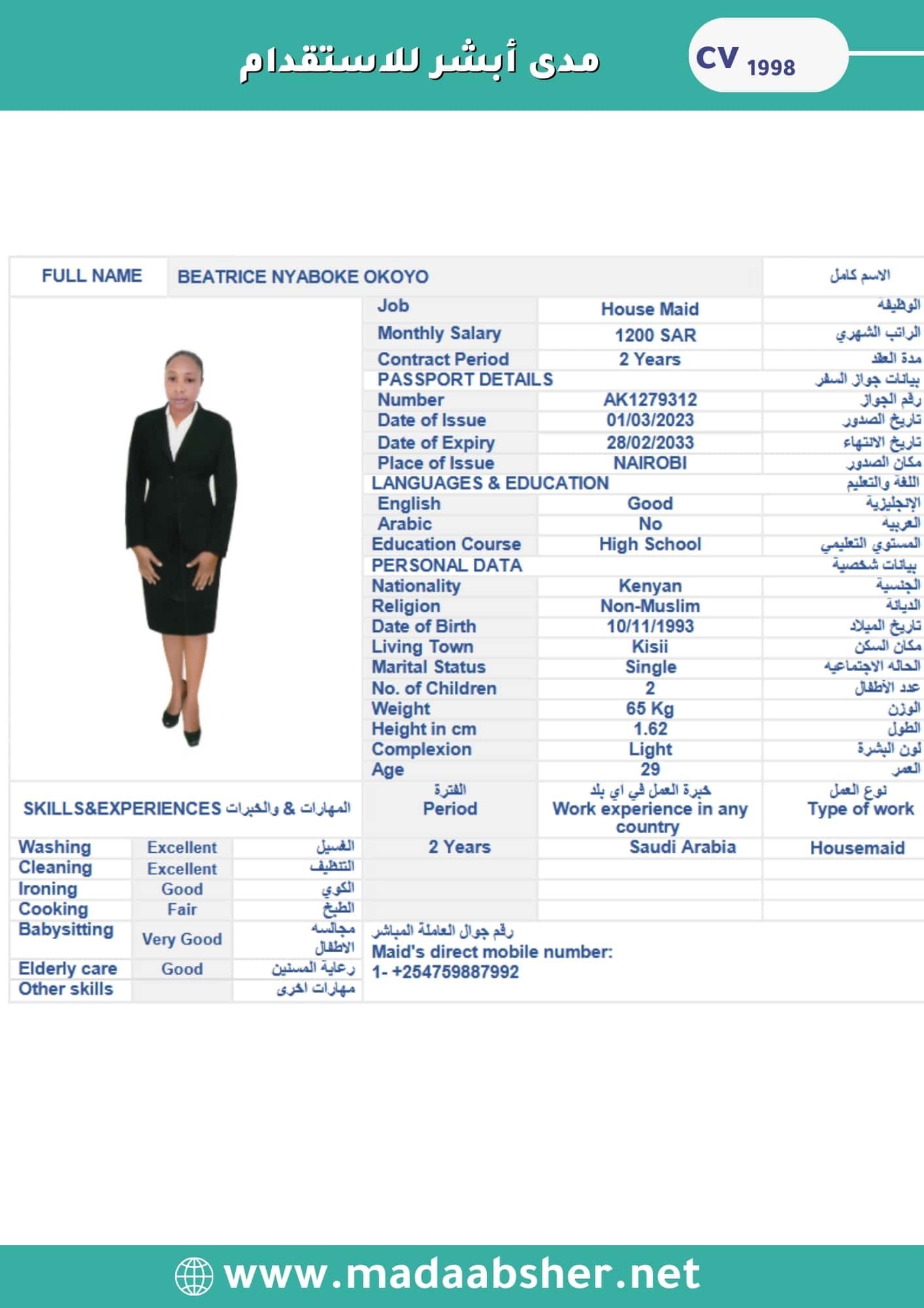 📞 للاستفسار أو البدء بإجراءات استقدام عاملة منزلية من كينيا عبر مكتب مدى أبشر للاستقدام، تواصل معنا الآن ( +966576717928)