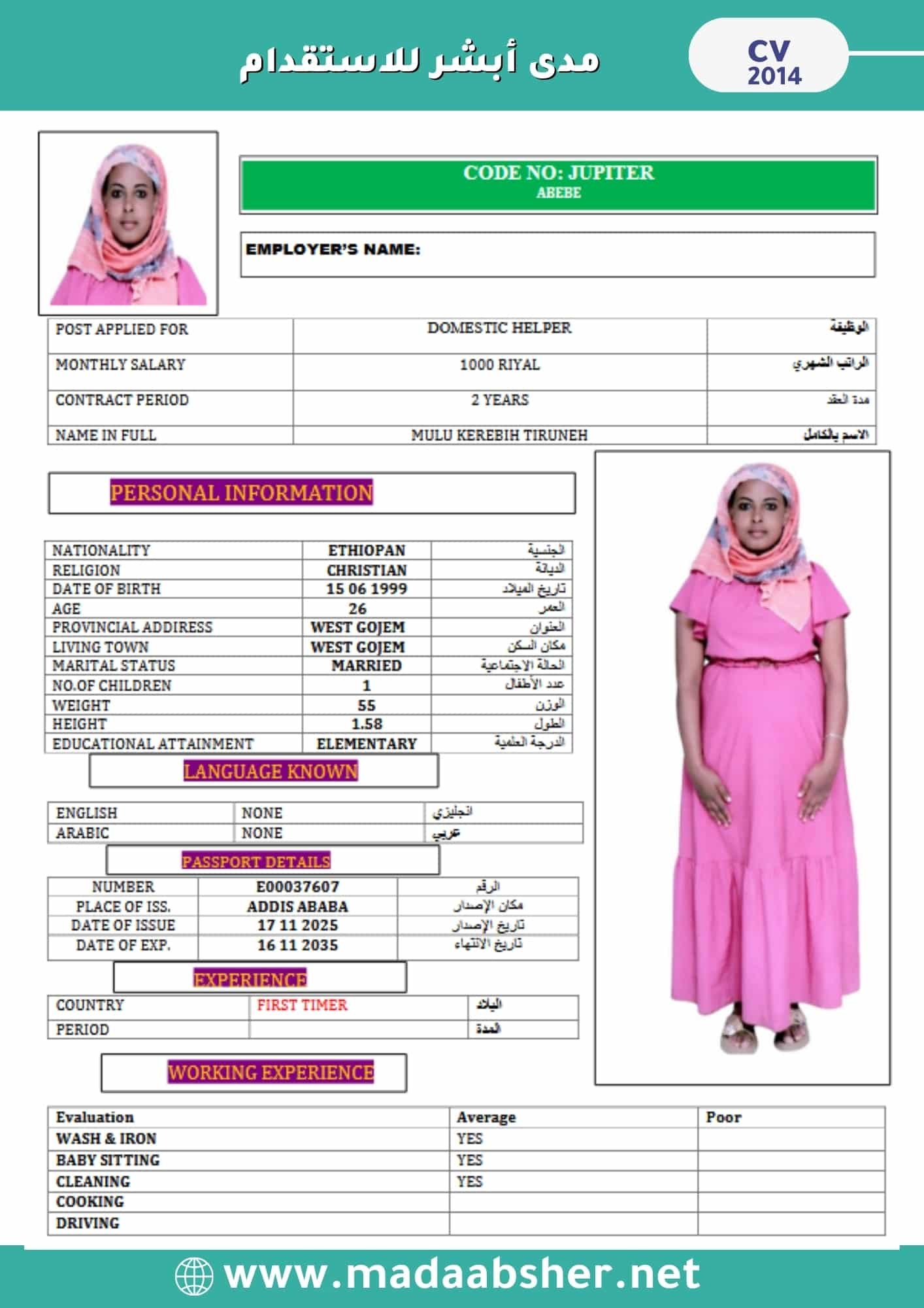 • خبرة وكفاءة عالية في جميع الأعمال المنزلية