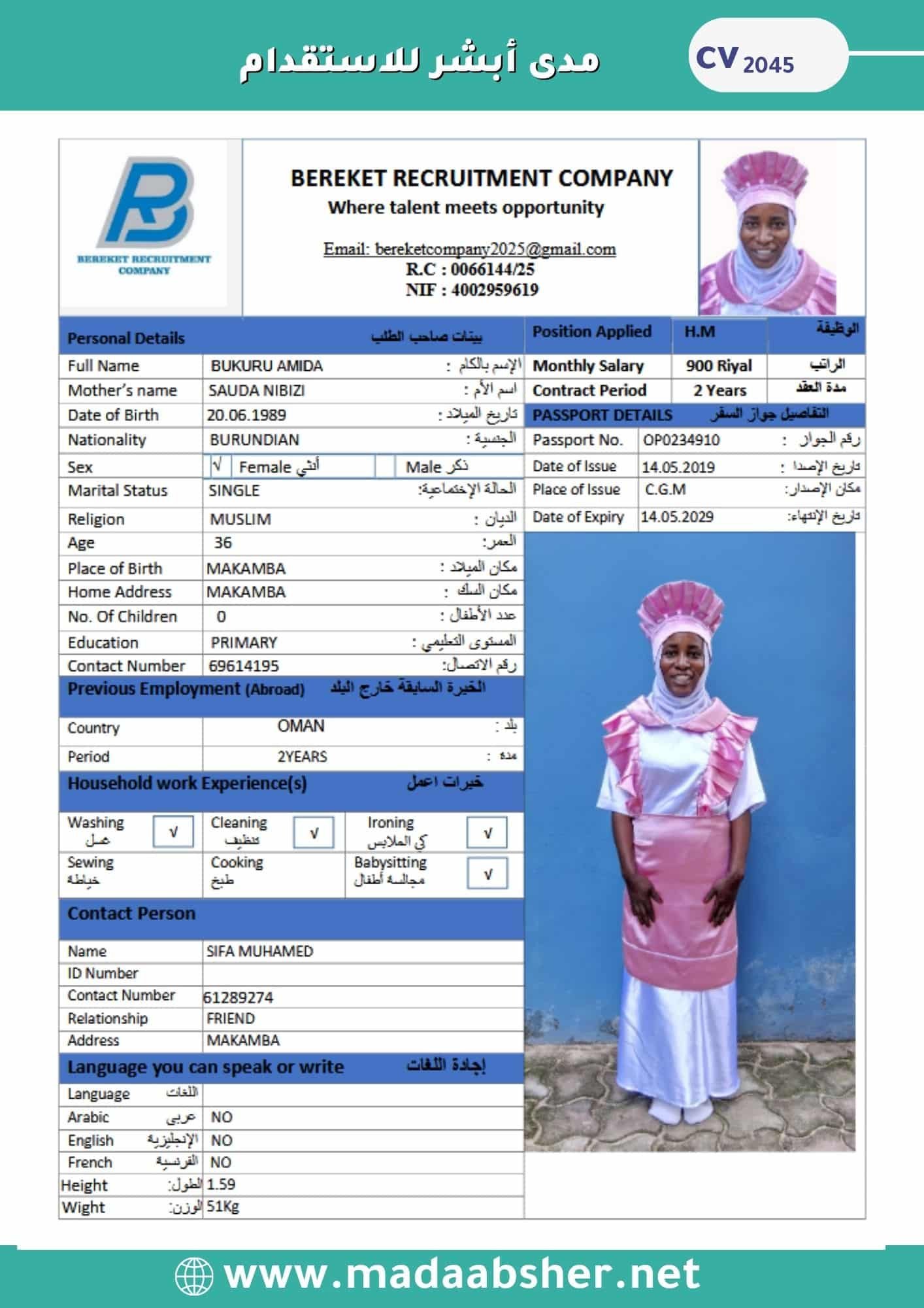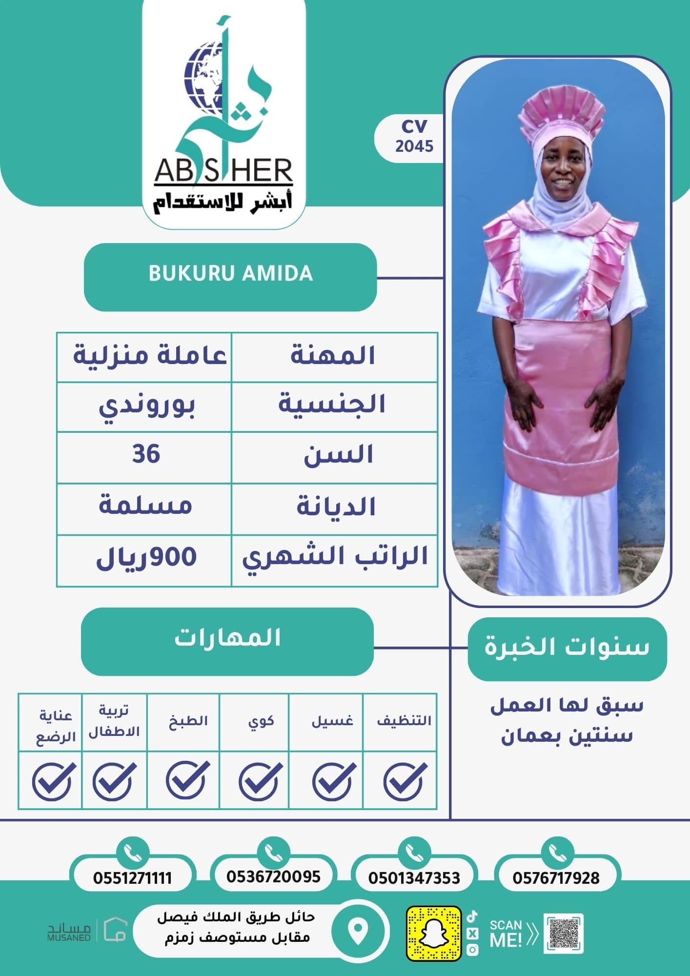 • خبرة وكفاءة عالية في جميع الأعمال المنزلية