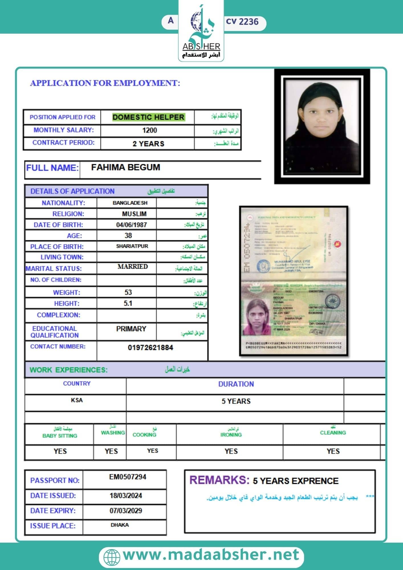 • 🏆 التجربة والخبرة: كثير من العمال البنجلاديشيين لديهم خبرة سابقة في العمل المنزلي.